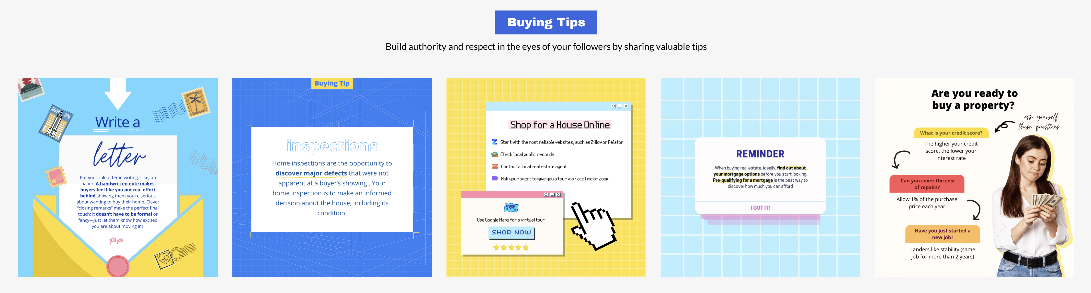 Don’t spend hours creating social media content, or pay someone to do it. With our Canva Real Estate Agent Instagram Templates, we have done all the hard work for you!